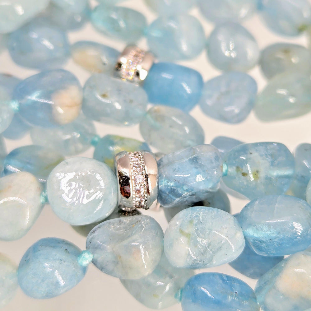 "Aguas Mas Finas" 24" - 26" Necklace - Aquamarine, Topaz, Anti-tarnish Sterling