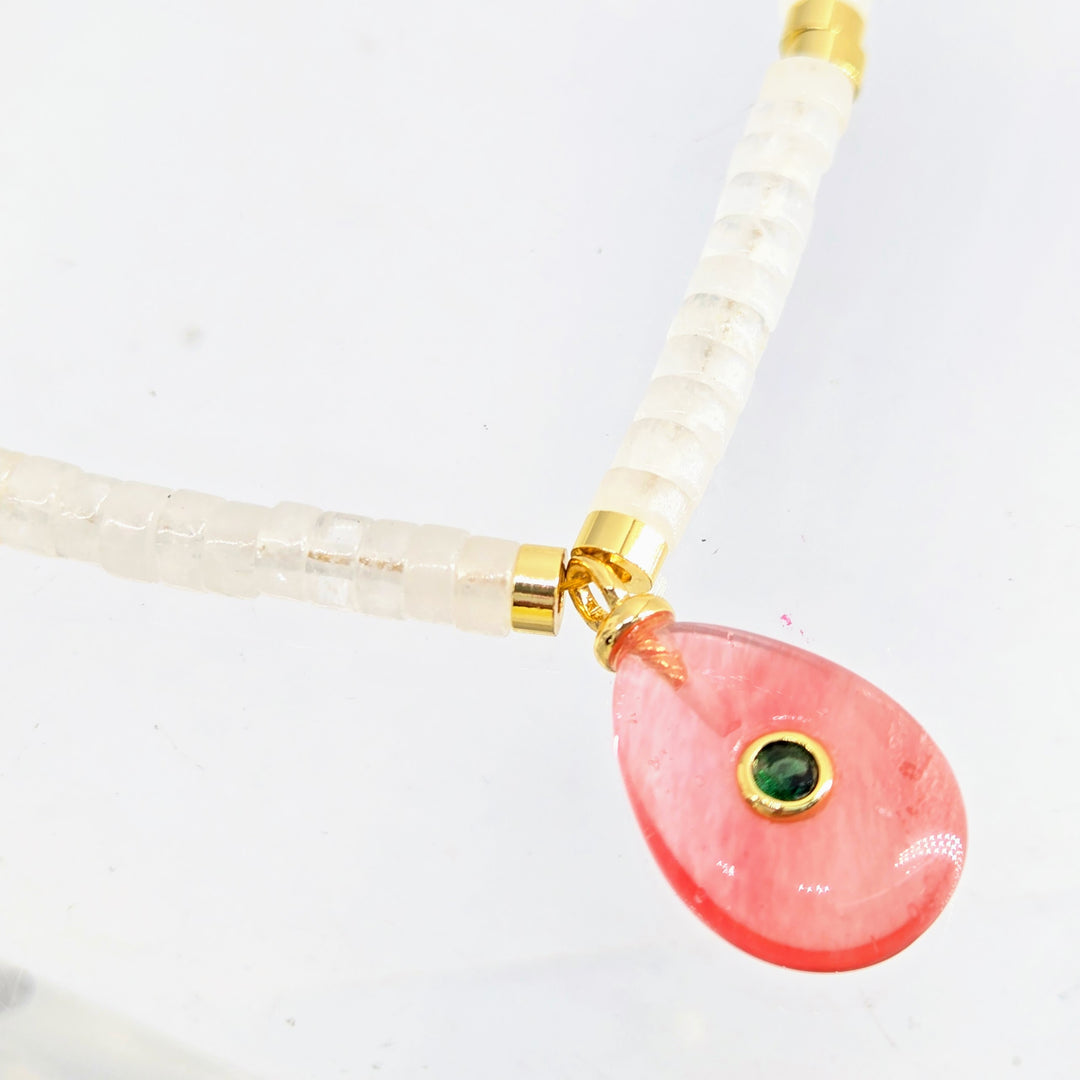 "Gem Candy" 15" - 17" Necklace - Cherry Quartz, Green Topaz, Quartz, Gold PVD