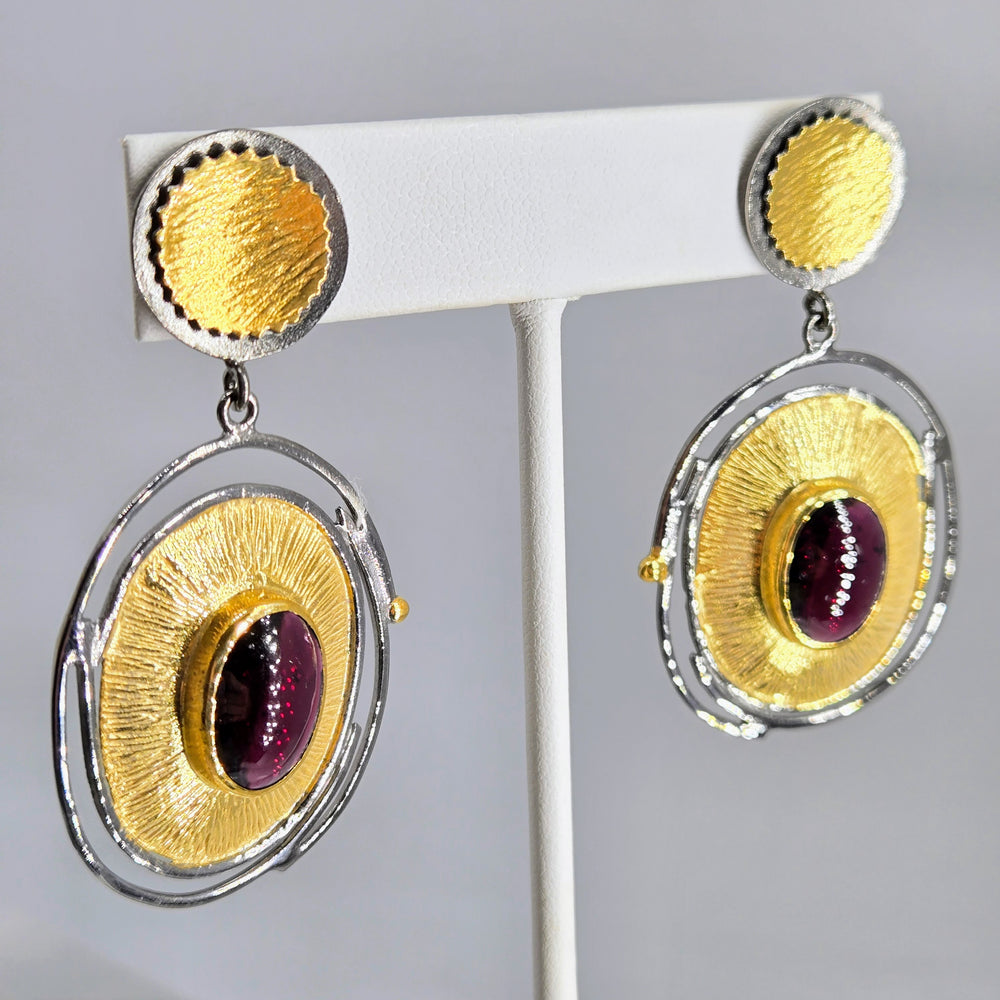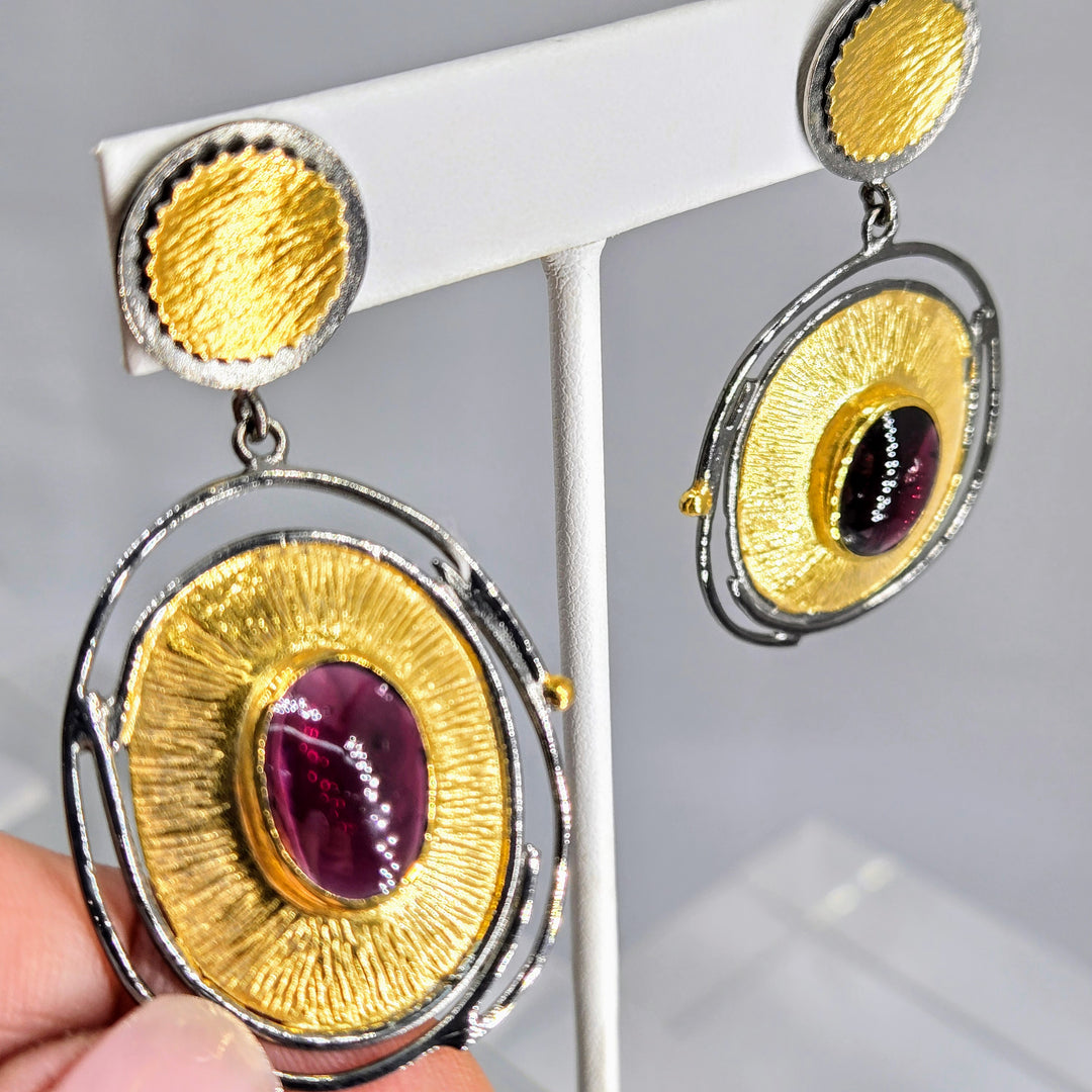 "Berry Crush!" 2.25" Earrings - Rhodolite Garnet, Black Sterling, 18k Gold