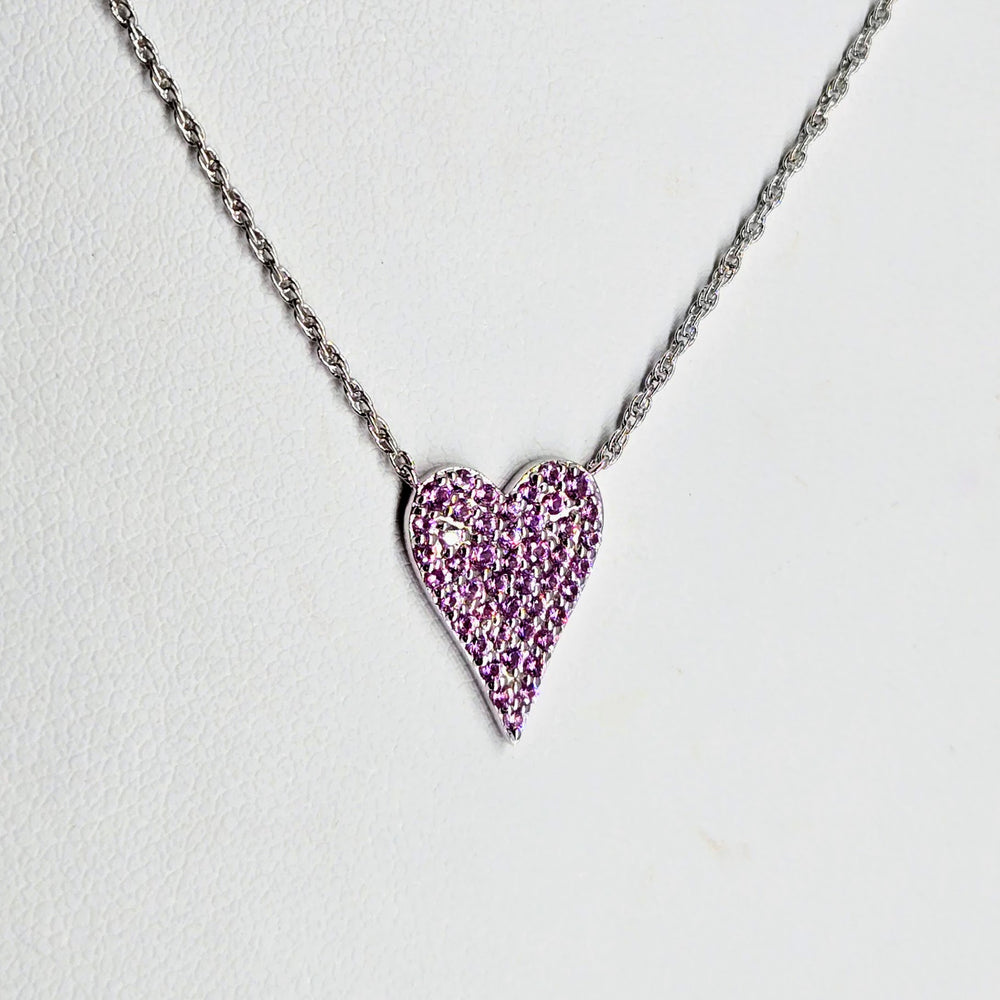 "My SweeTart Heart" 17" - 19" Necklace - Pink Sapphire, Anti-tarnish Sterling