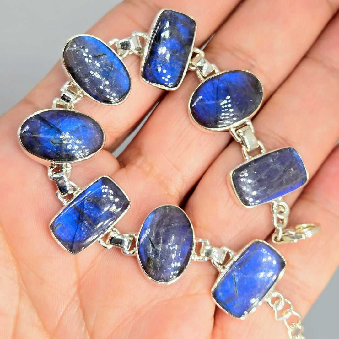 "Blue Flash" 6.25" - 7.5" Bracelet - Labradorite, Sterling