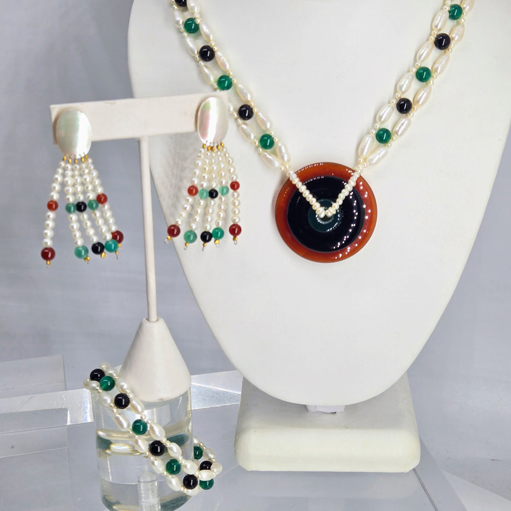 "Benjamin Button's Babe" 18" Necklace - Pearls, Onyx, Carnelian