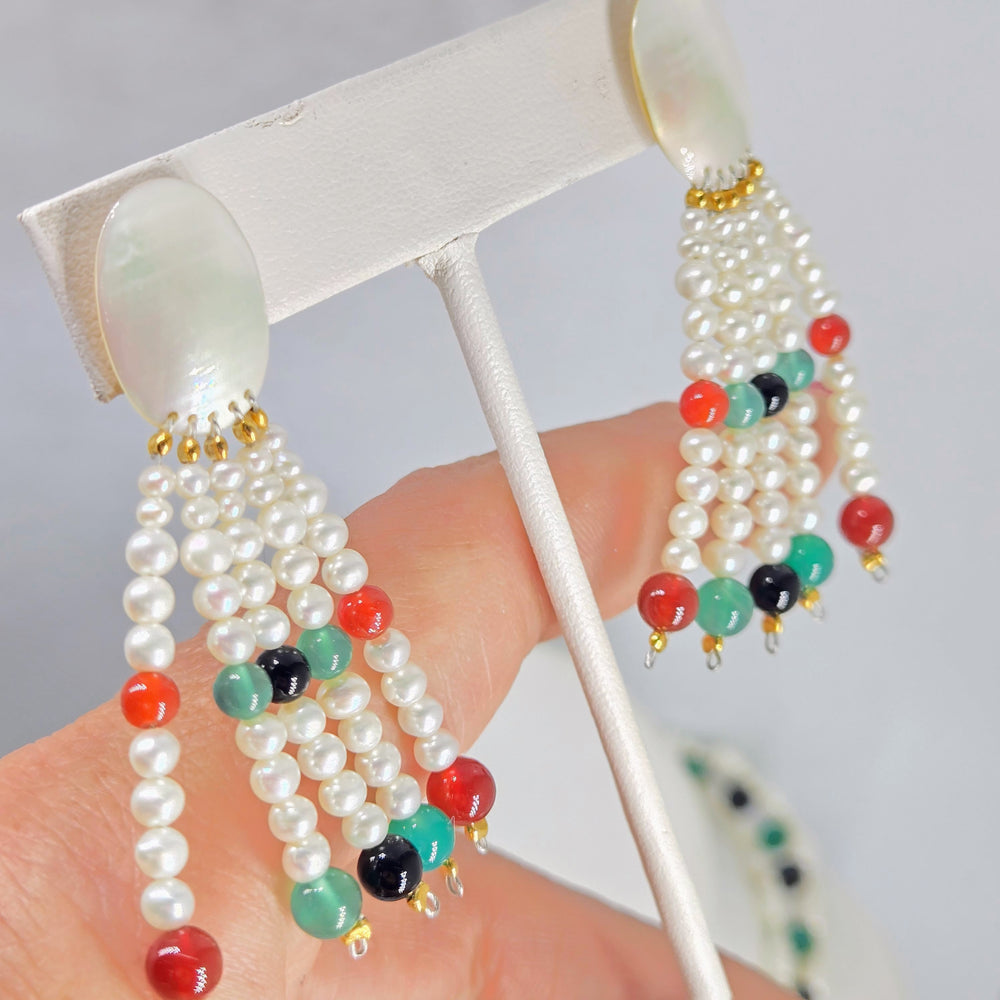 "She's a DISH!" 2.25" Earrings - Pearls, MOP, Onyx, Carnelian Sterling Posts