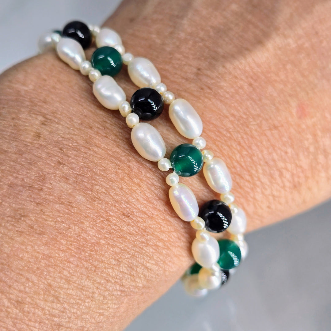 "Deco Divine" 7.5" Braacelet- Pearls, Onyx
