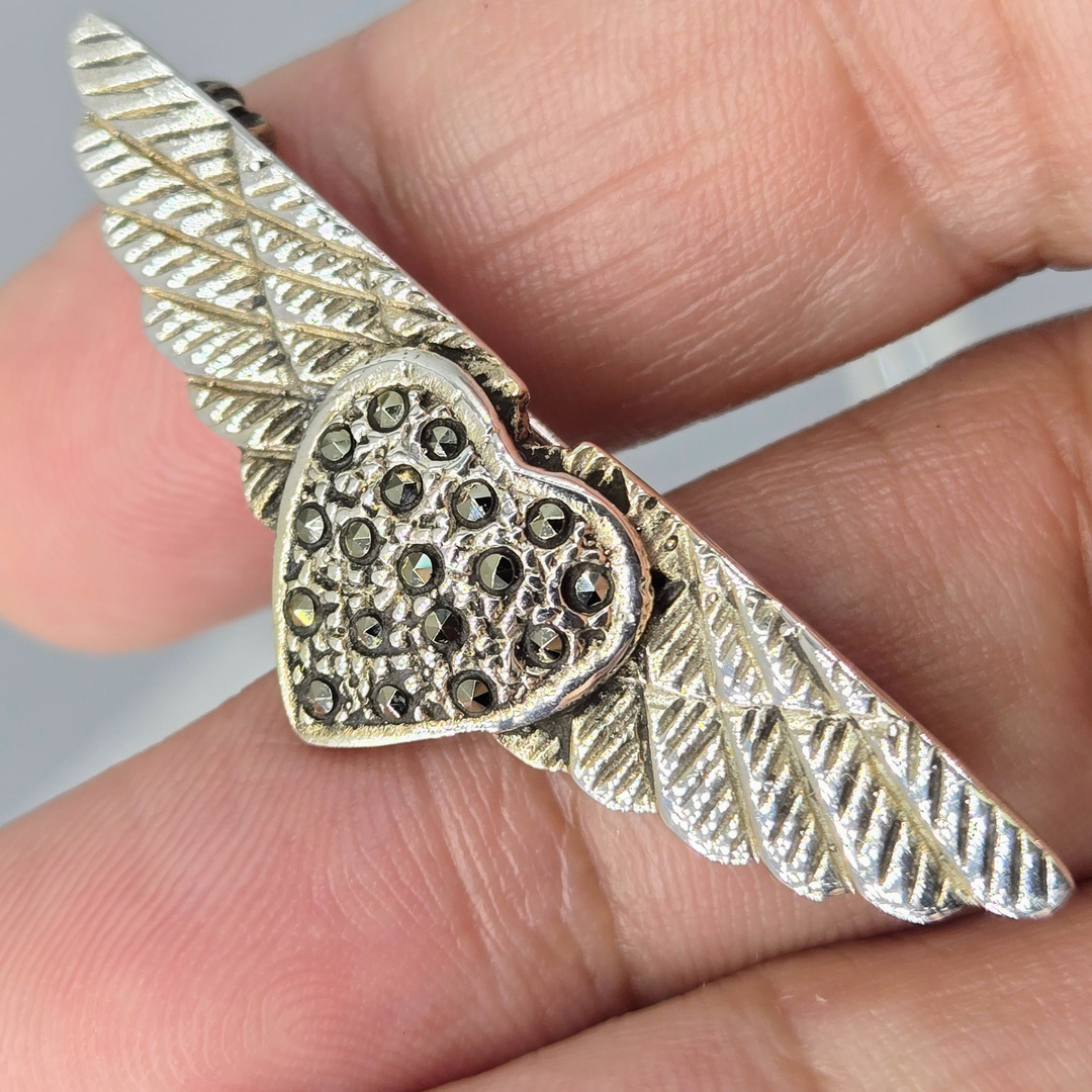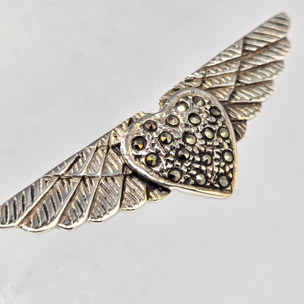 "Wings Of Love" .75" X 2" Brooch/Pearl Enhancer - Marcasite, Sterling
