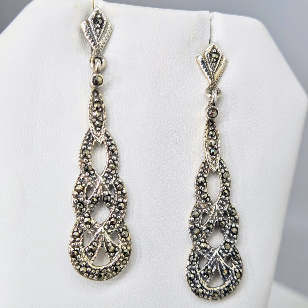 "Sailor's Valentines" 1.75" Earrings - Marcasite, Sterling