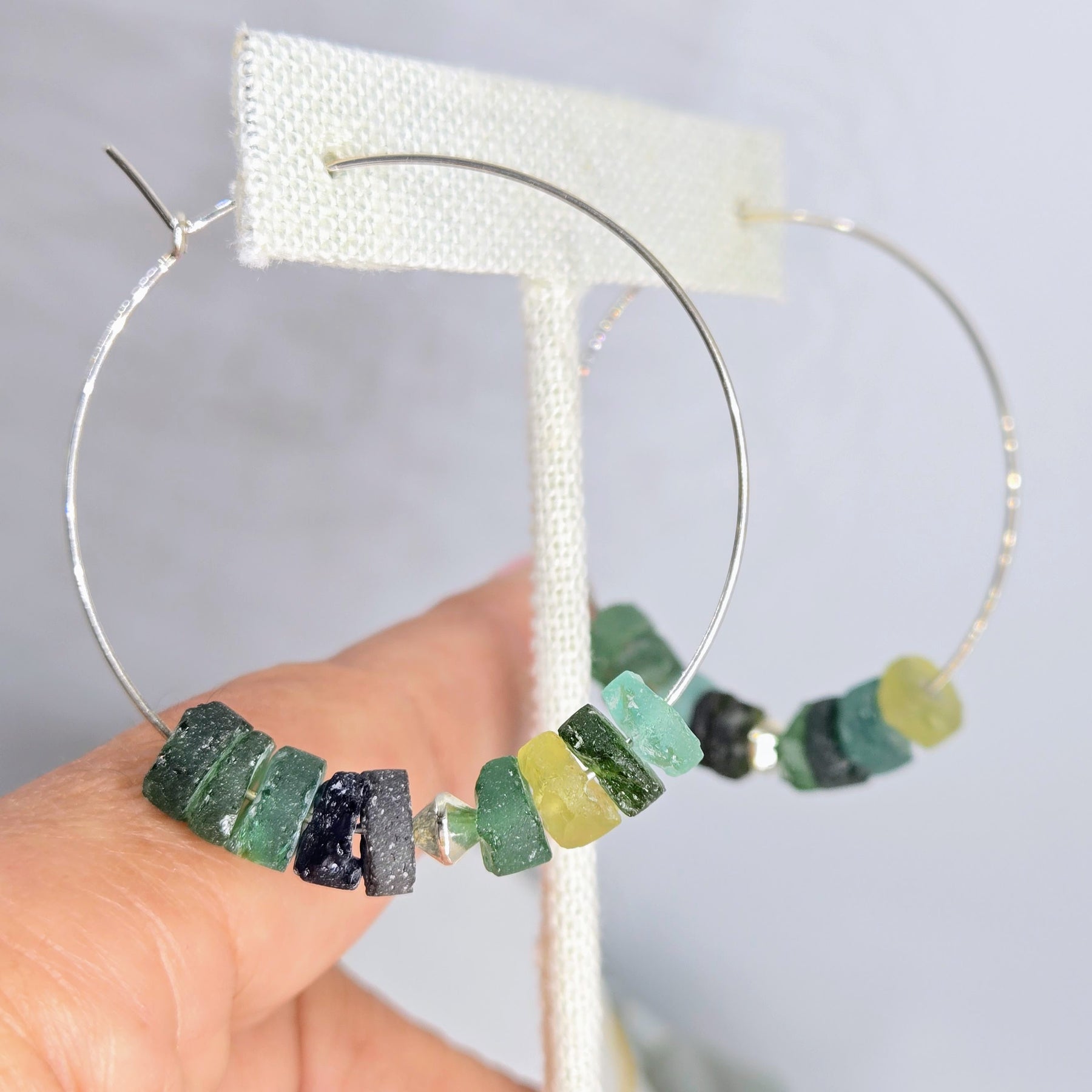 The "Holy Hoops" 2" Hoop Earrings are 2,000-Year-Old, Ancient Roman Glass beads on Sterling hoops... Heavenly!