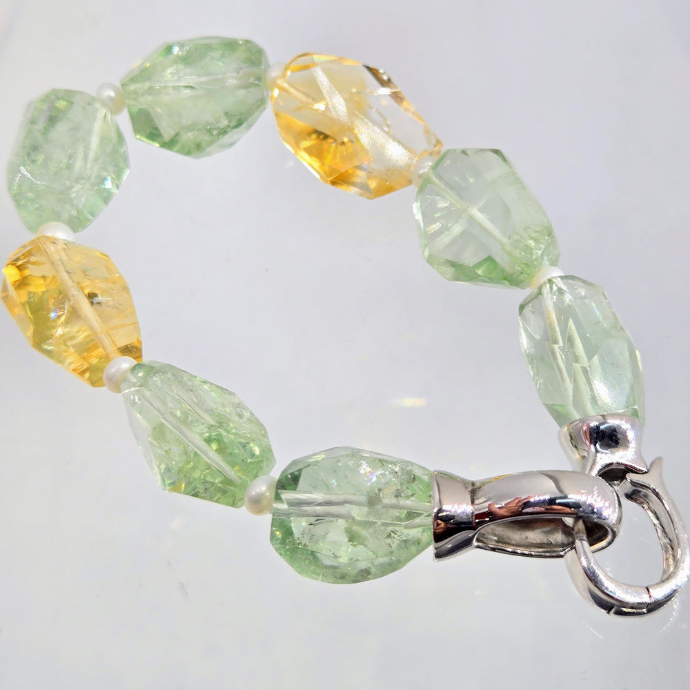 "Golden Sands" 7" - 8" Bracelet - Prasiolite, Druzy, Rutilated Quartz, Ocean Jasper, Anti-tarnish Sterling