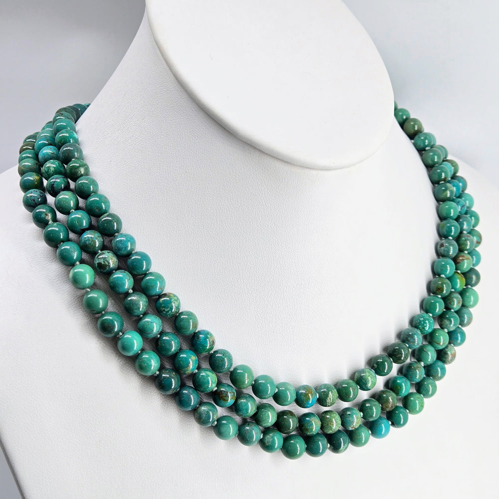 "Kingman Trio" 20" Necklace - Turquoise, Anti-tarnish Sterling