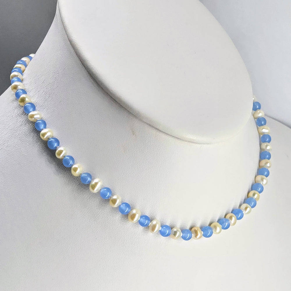 "Icey Blues" 15"-17" Necklace - Pearls, Chalcedony, Sterling Findings