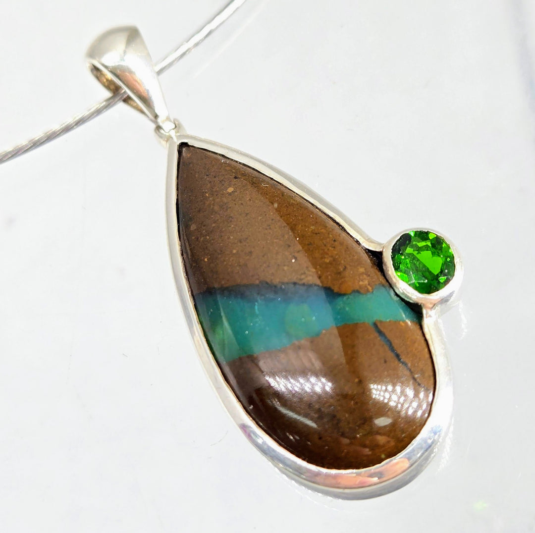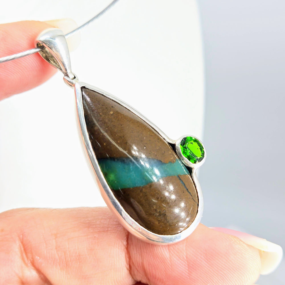 "The Matrix" Pendant Necklace - Matrix Chrysoprase, Chrome Diopside, Sterling