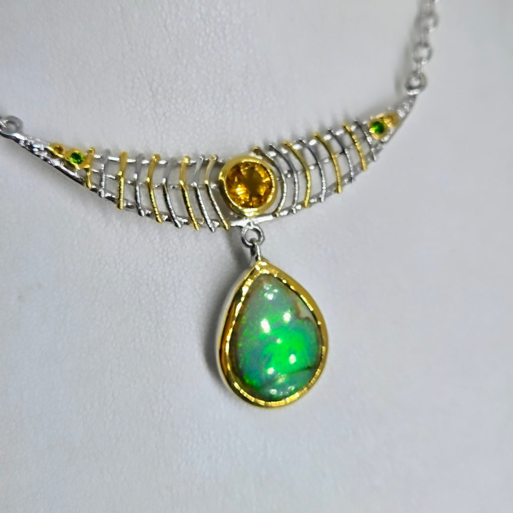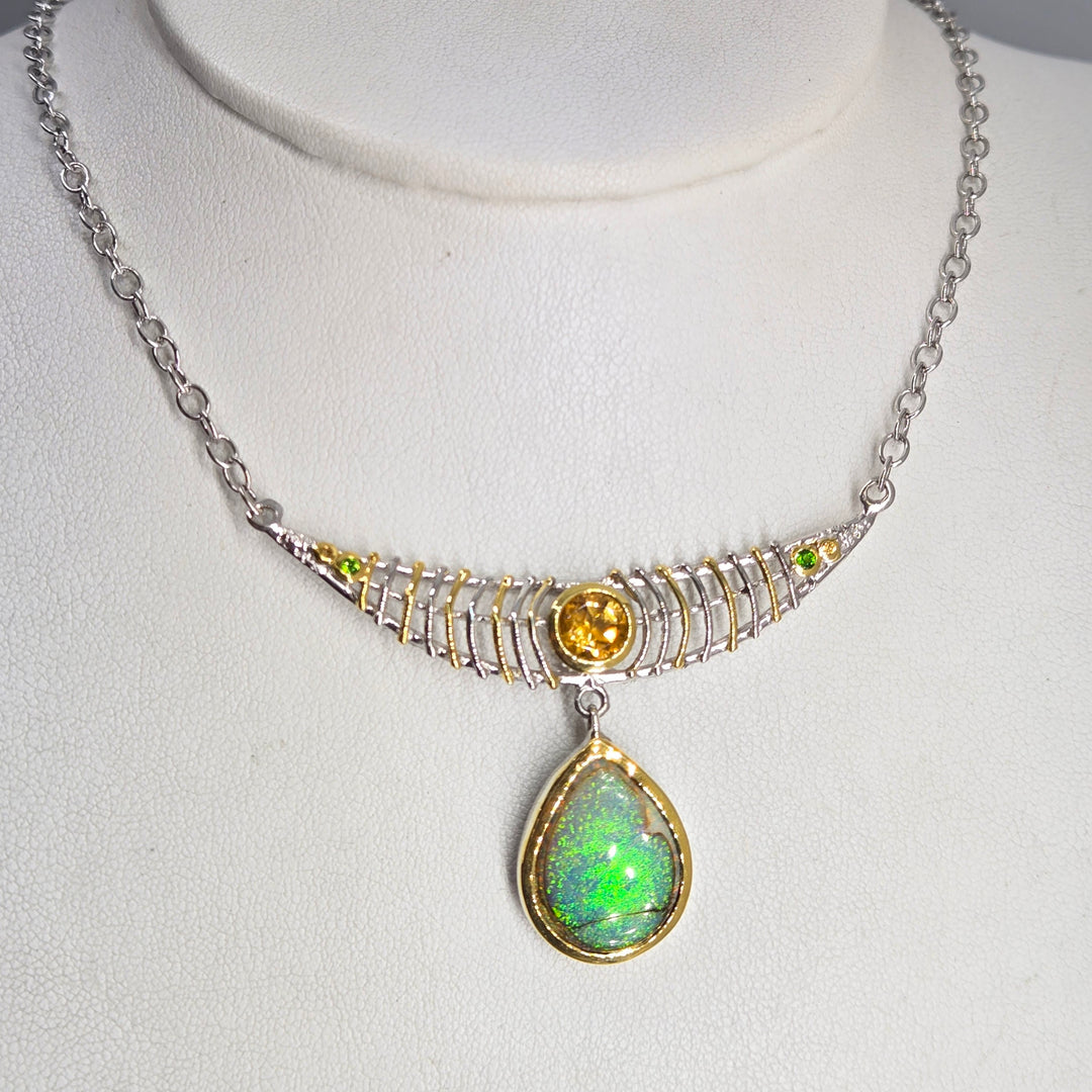"The Green Flash" 18" - 20" Necklace- Citrine, Opal, Sterling, 18k Gold Accents
