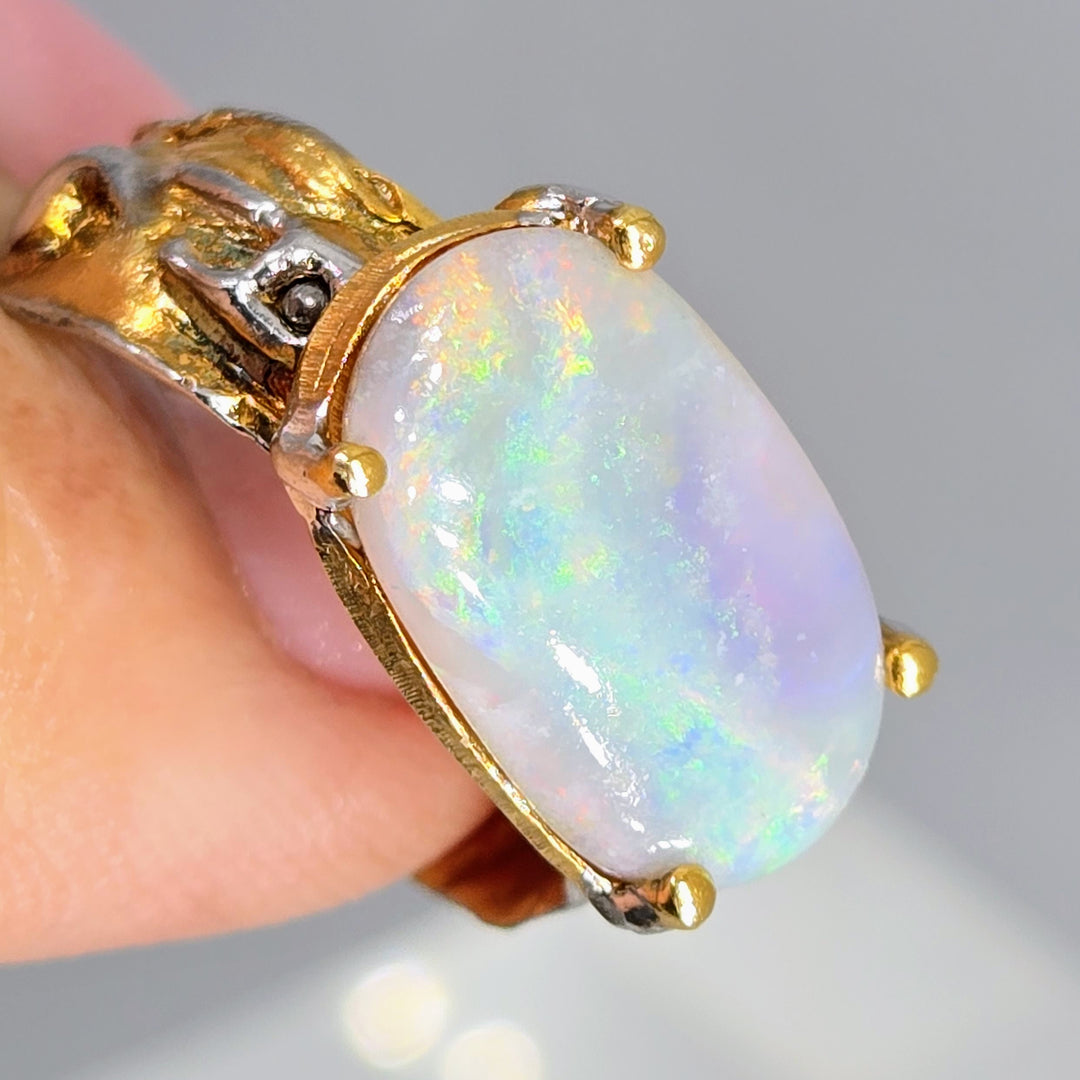 "Aurora Borealis" Sz 8.5 Ring - Australian Opal, Sterling, 18k Gold Accents