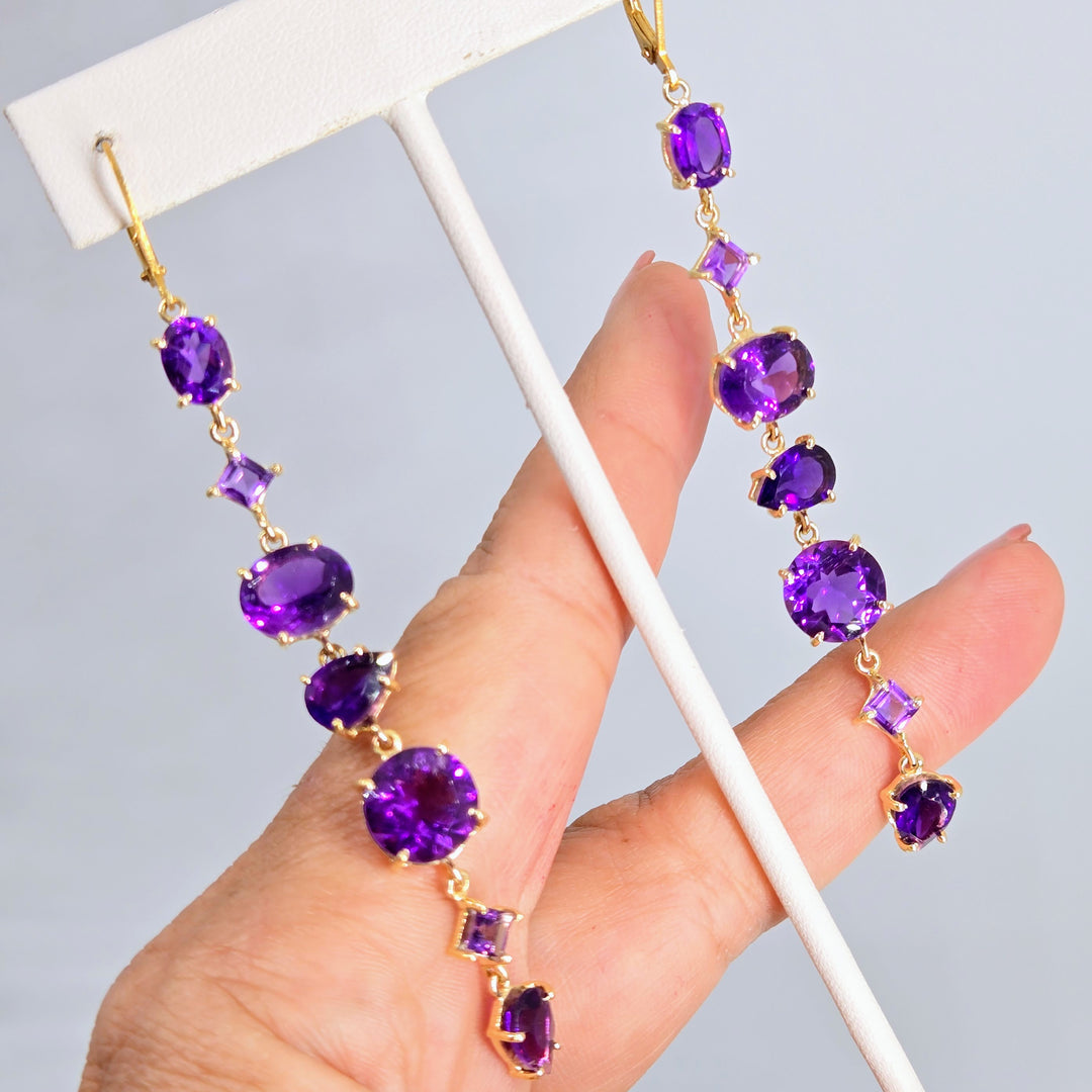 "7 Sweet Stones" 3.75" Earrings - Amethyst, 18k Gold Sterling