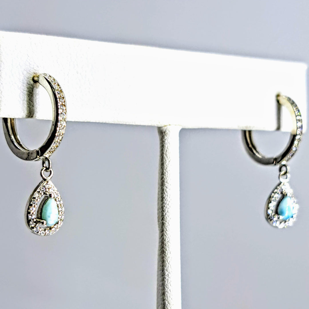 "Hugs From Key West" 1" Earrings - Larimar, Zircon, Anti-tarnish Sterling
