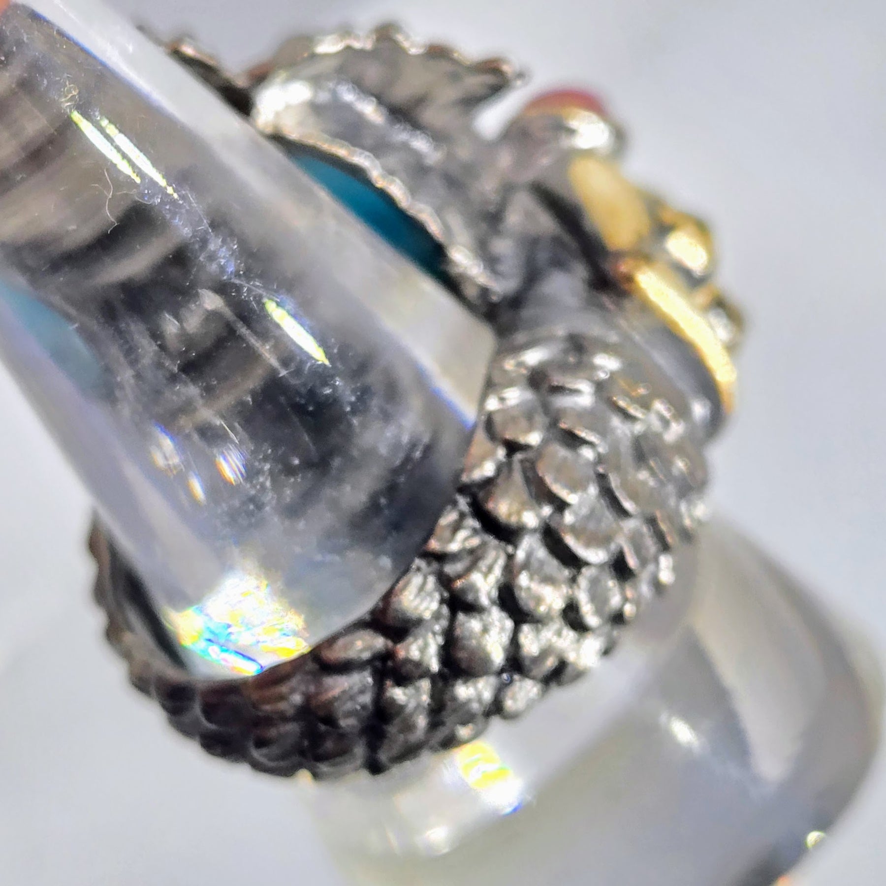 "Splash" Sz 9 Ring - Larimar, Tourmaline, Black Sterling, 18k Gold Accents