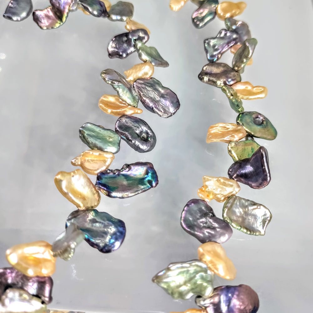 "Peacock Collar" 16" Flex Collar Necklace - Peacock Pearls, 14k Gold