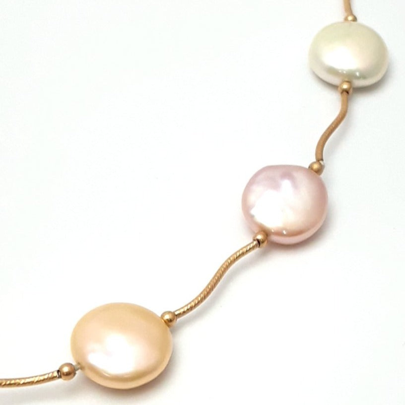 "Cotton Candy Clouds" 18" Necklace - Coin Pearls, 14K Gold