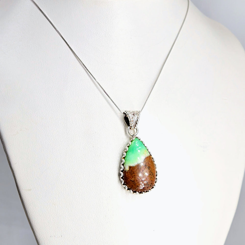 "Mint Chip" Pendant - Boulder Chrysoprase, Sterling