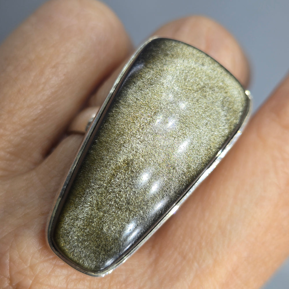 "Shimmer" Adj. Sz Ring - Gold Shimmer Obsidian, Sterling