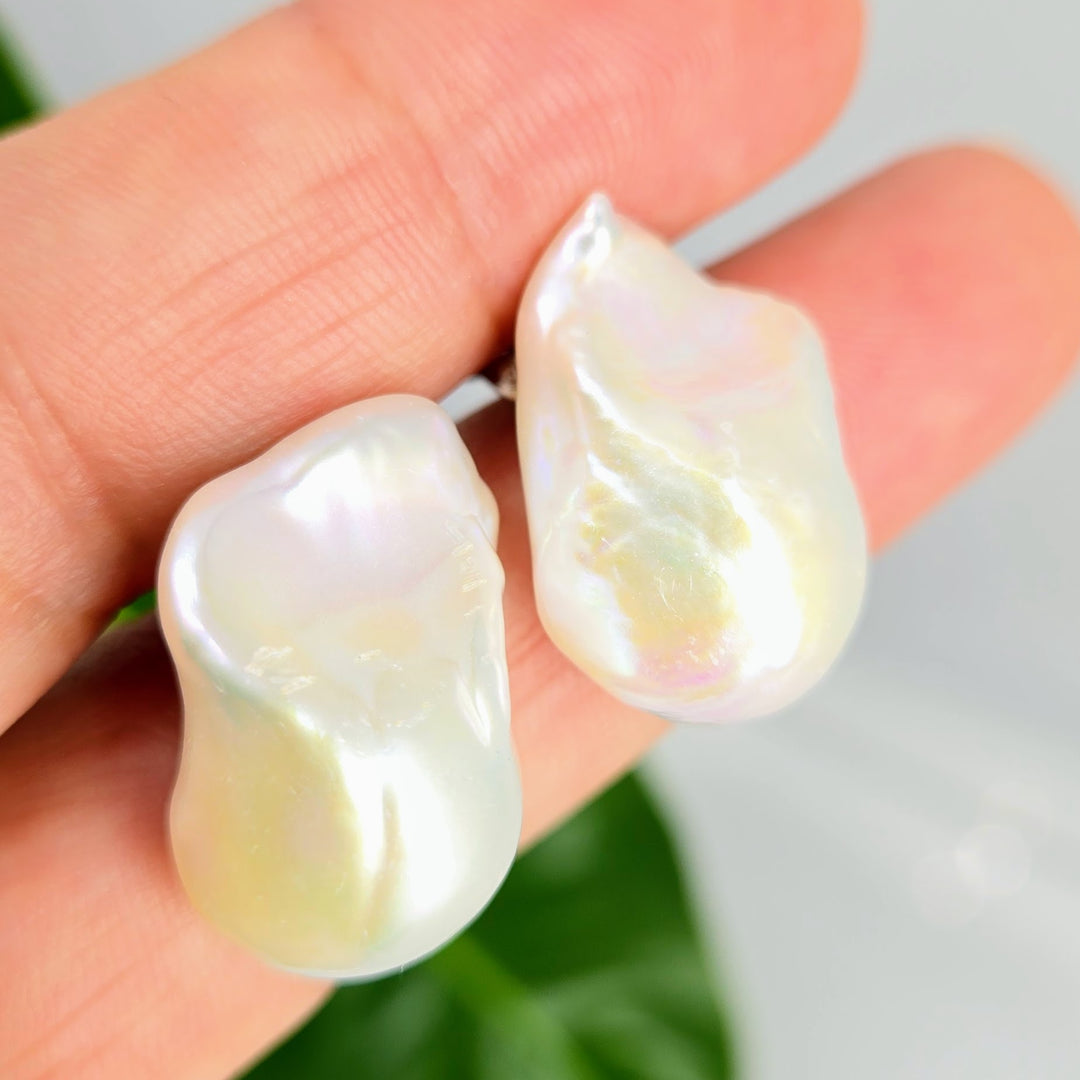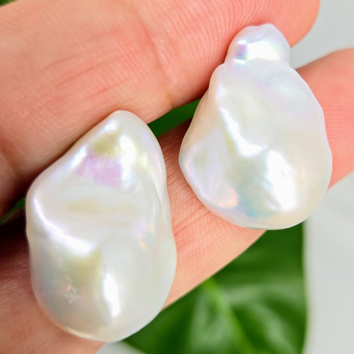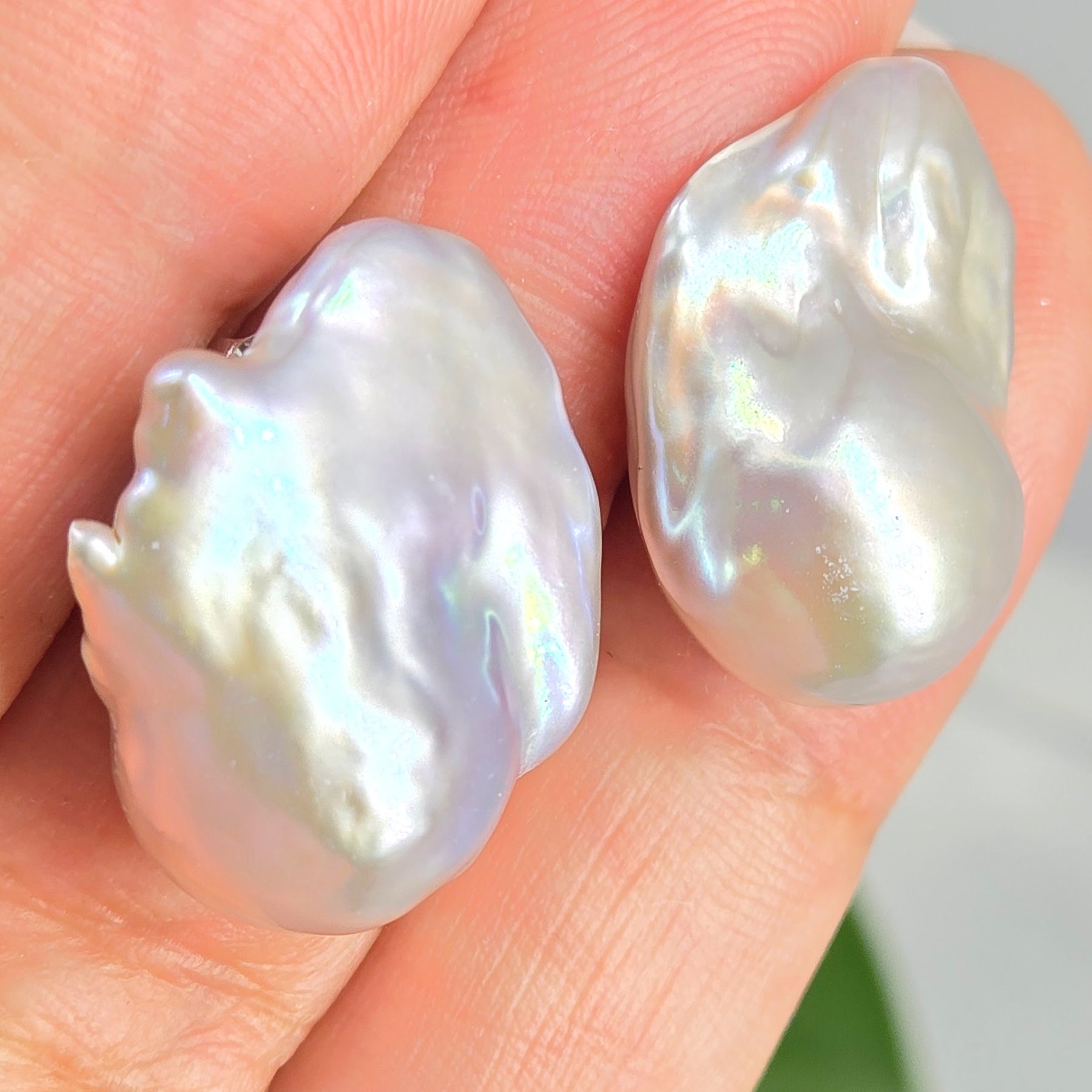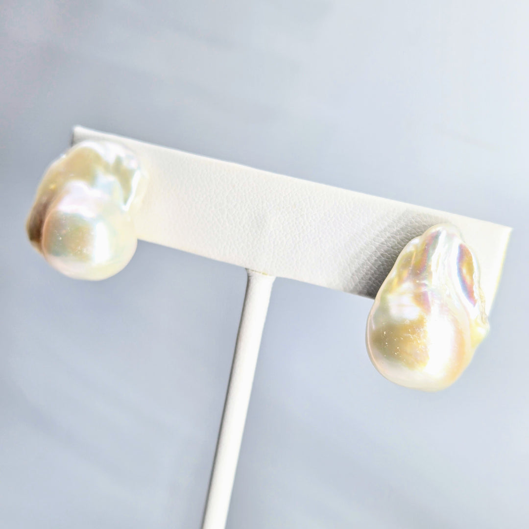 The "Goin' For Baroque" Appx. 1" Earrings are Large & Lustrous, Baroque Pearl, Statement Studs With .925 Sterling Silver Post & Complimentary 'Weight-lifter Backs' (Re. $9.95) to Keep Them Sitting Up, Snuggly, On The Lobe (So, piercings are covered & they feel great!).