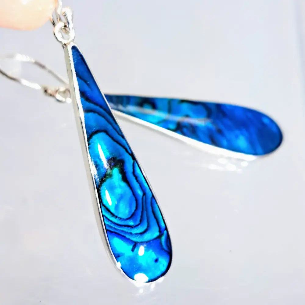 The "Exclamation #2!" are 2" Earrings of Naturally Vibrant or Deep Blue Paua Shell, or White Mother Of Pearl, Bezel-set in Sterling with a French Wire Attachment. They're Lightweight & Look Great! :D