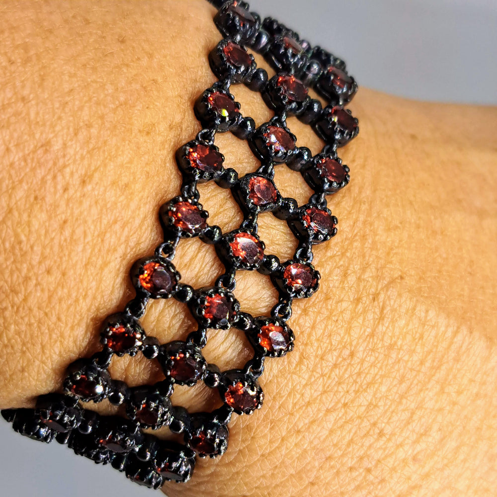 "Black Berry Lace" 6.5" (Small) Bracelet - Garnet, Black Sterling