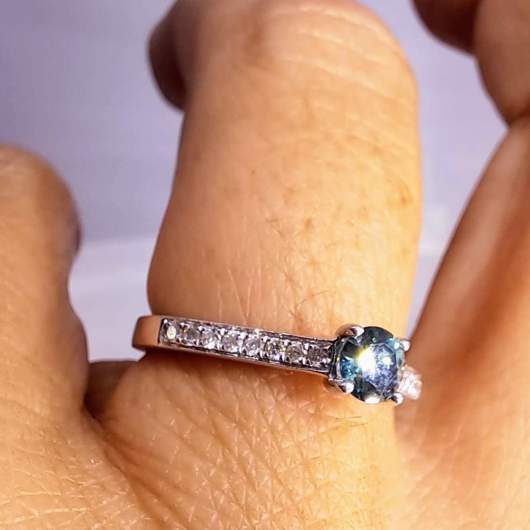 "Beautiful Dream” Sz 6.5 Ring - Blue & White Diamonds, 18K White Gold