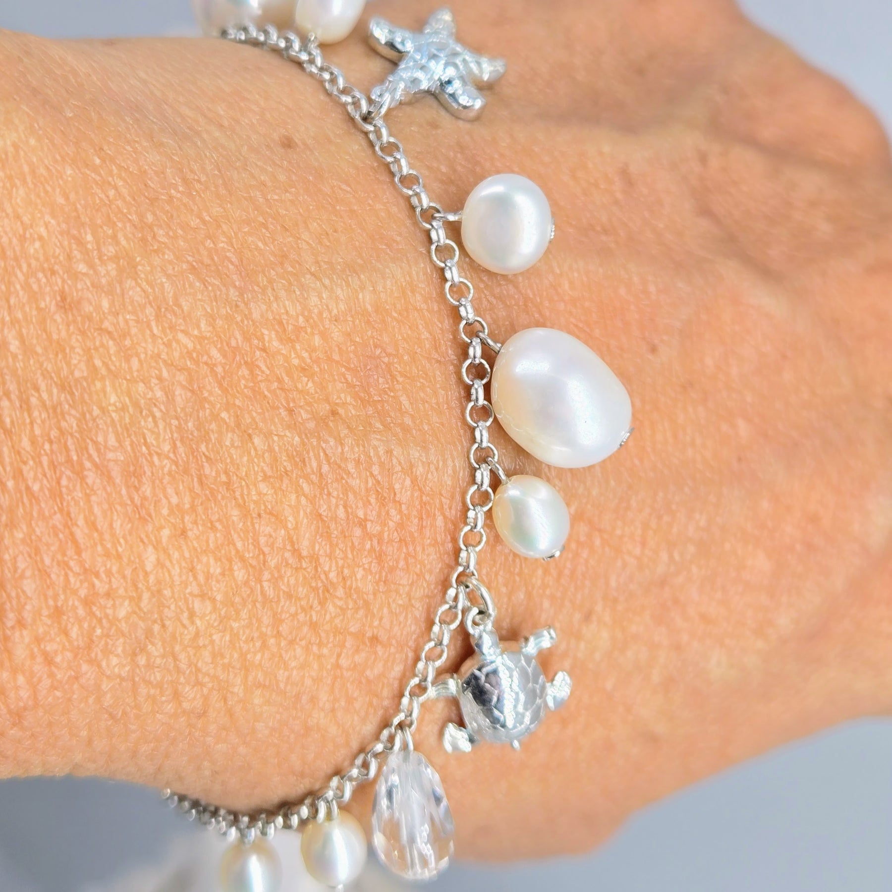 "Island Charm" 7.5" Bracelet - Pearls, Quartz, Sterling