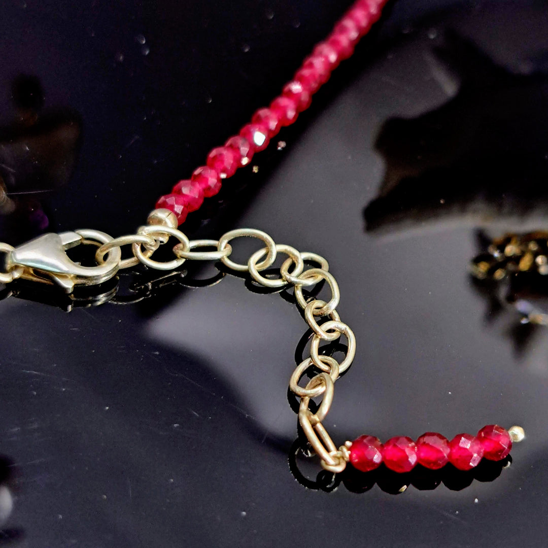 "Ruby Gem Strand" 16" - 18" Necklace - Ruby, Sterling