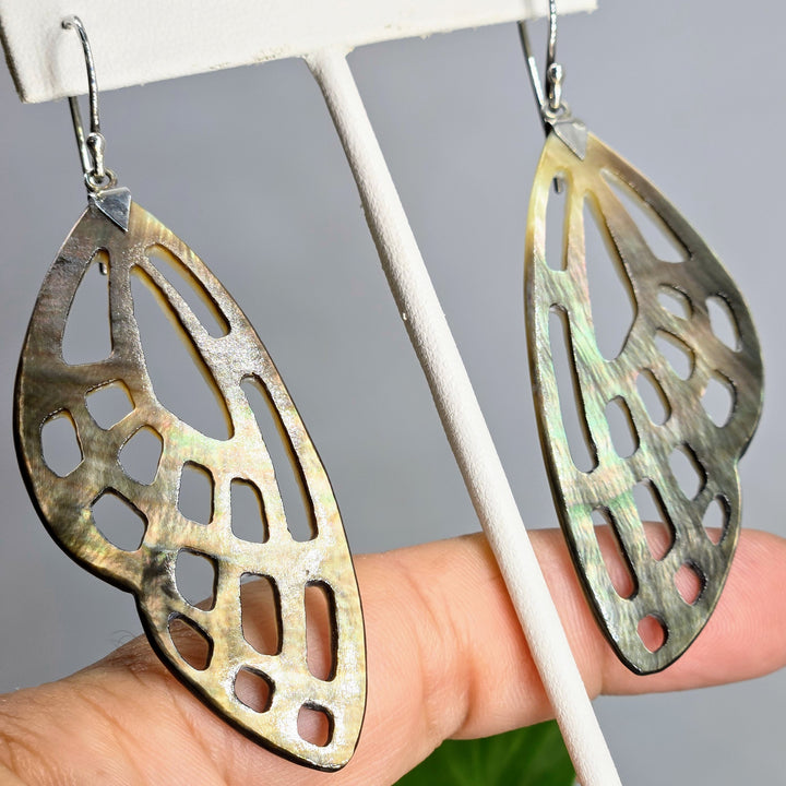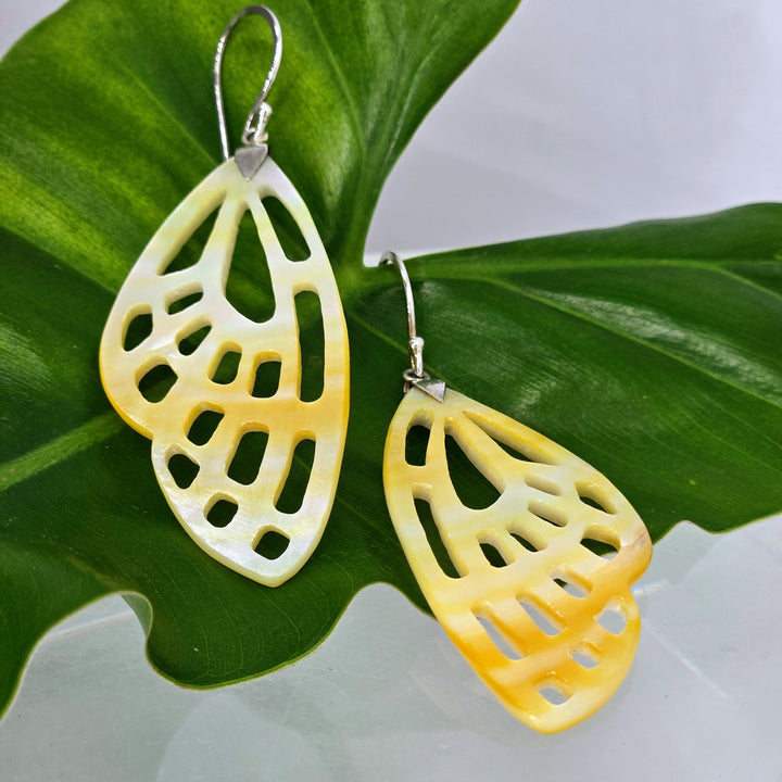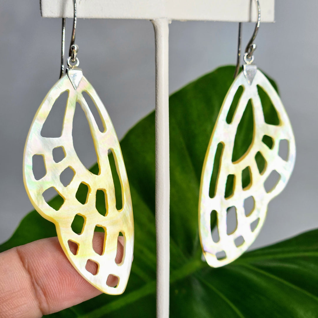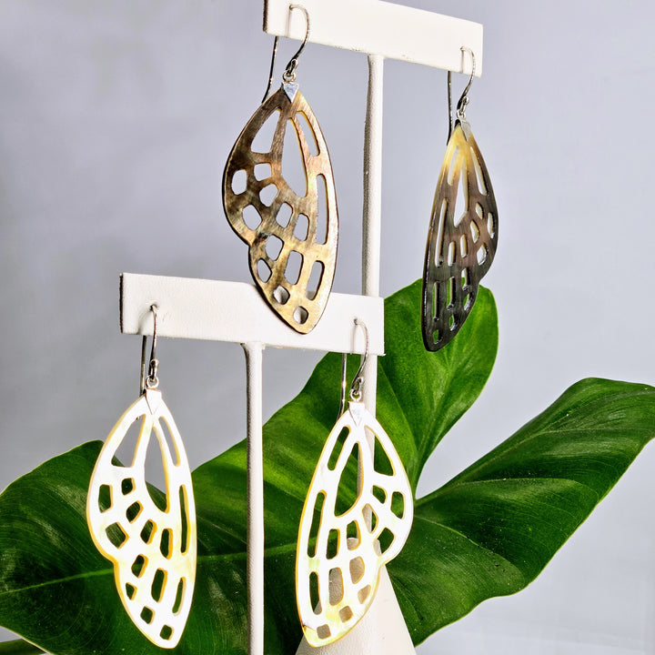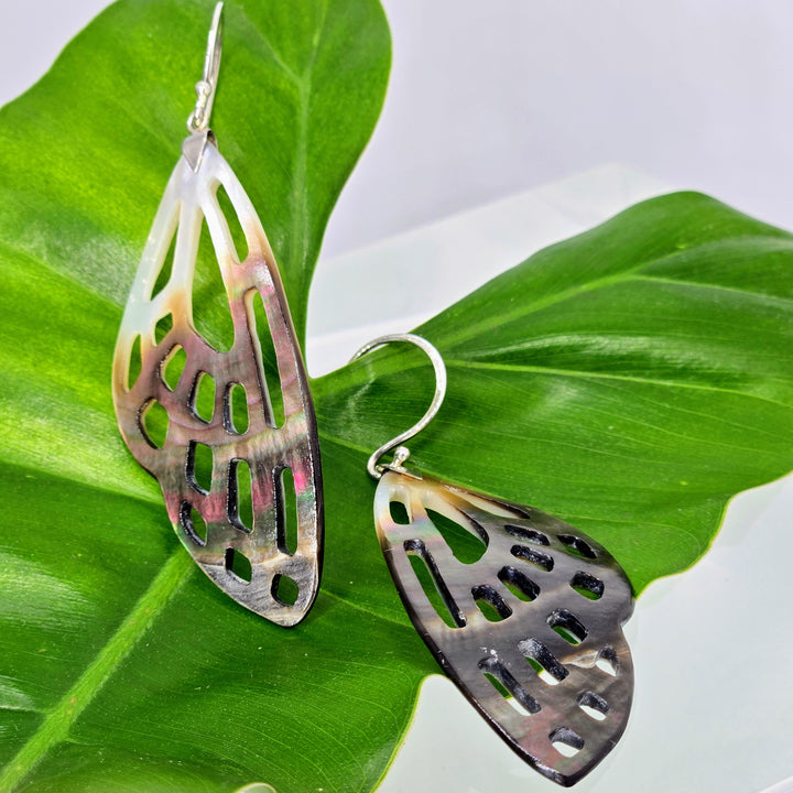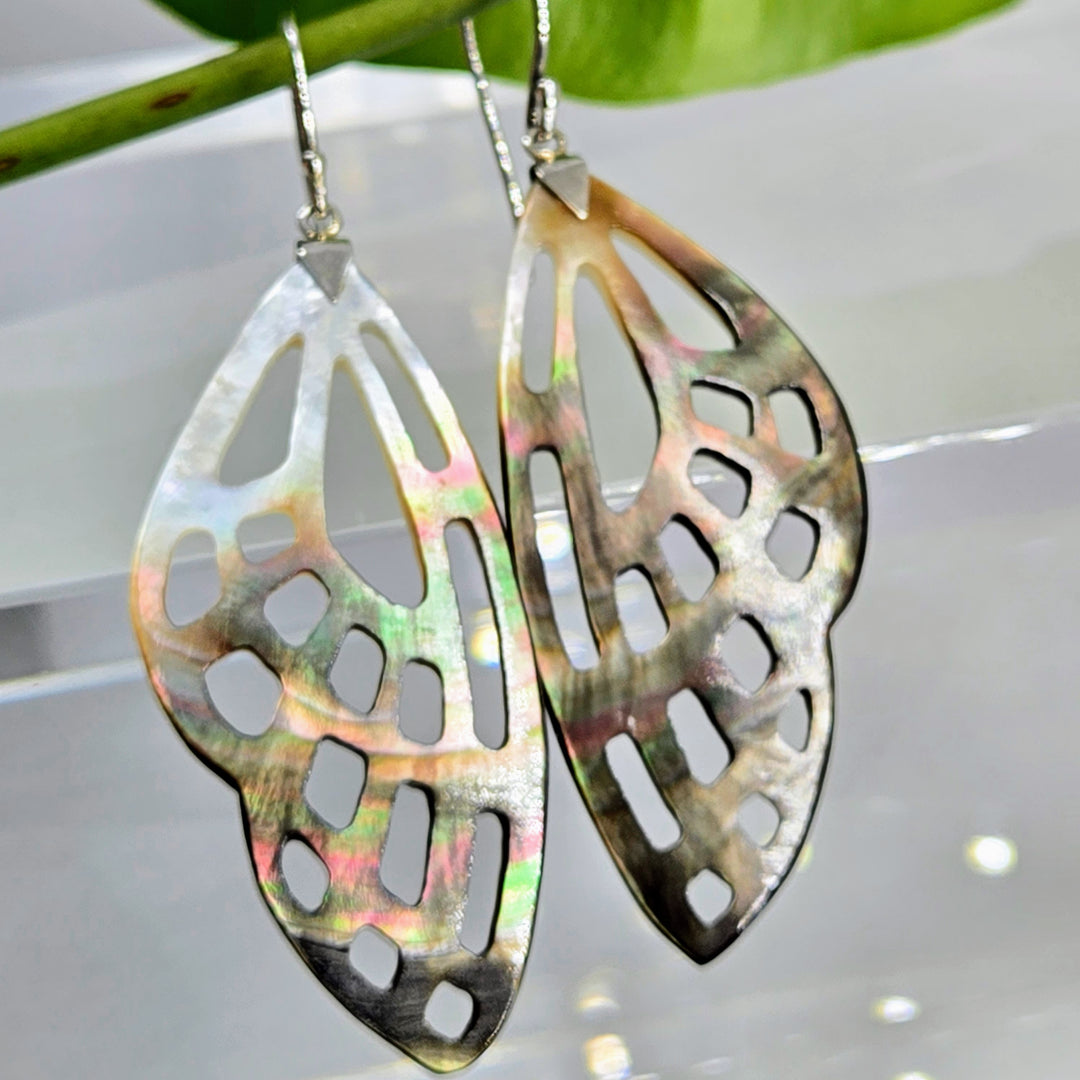 The "Wing & A Prayer" 3" Earrings Gorgeous, High Luster, Carved, Tahitian & Golden South Sea Mother Of Pearl 'Wings', on Sterling French Hook Attachments. They're SO Light & Swingy - But, with the Cool, Cutout Design - Allowing Air to Flow Through, You Won't Even Feel Them, but You'll Look & Feel Great IN Them! :D